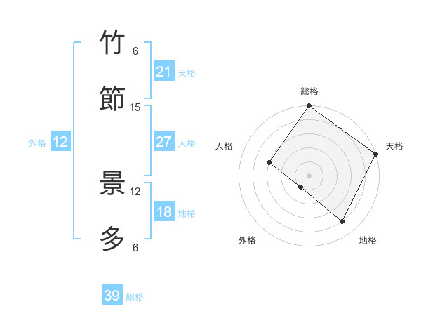 竹節 景多さんの総格は39画の5点!