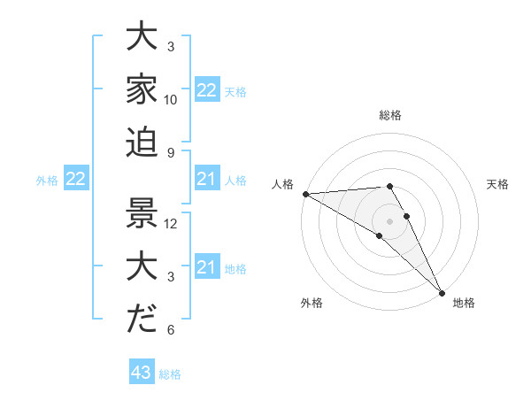大家迫 景大ださんを姓名の画数から五運を鑑定