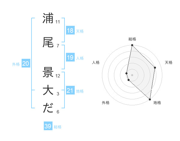 浦尾 景大ださんの総格は39画の5点!