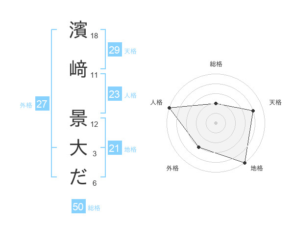 濱﨑 景大ださんを姓名の画数から五運を鑑定