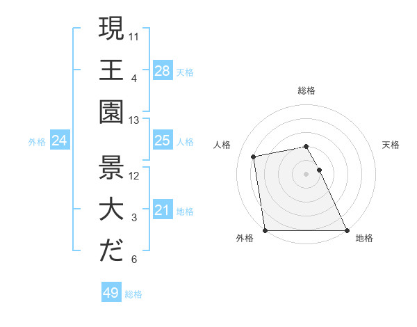 現王園 景大ださんを姓名の画数から五運を鑑定