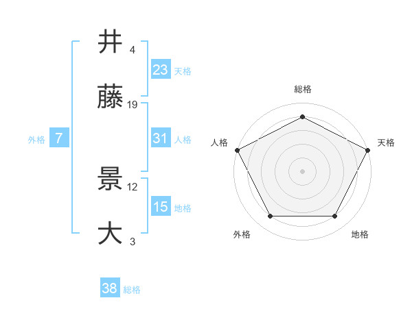 井藤 景大さんの総格は38画の4点!
