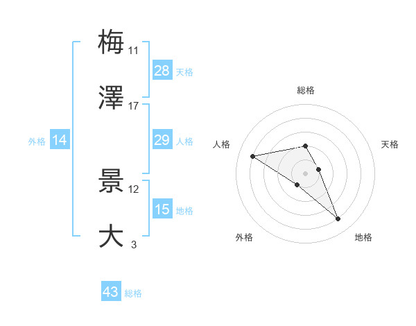 梅澤 景大さんを姓名の画数から五運を鑑定