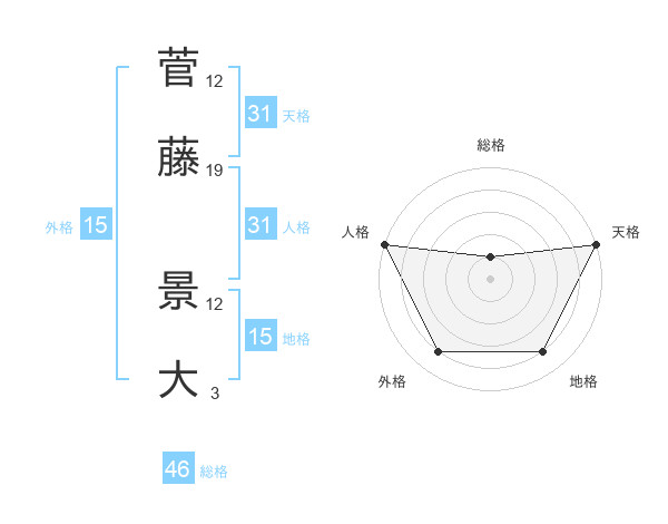 菅藤 景大さんの天格は31画の5点!