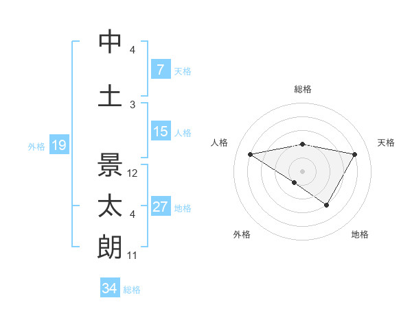 中土 景太朗さんを姓名の画数から五運を鑑定