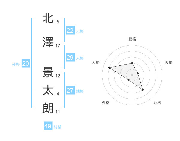 北澤 景太朗さんを姓名の画数から五運を鑑定