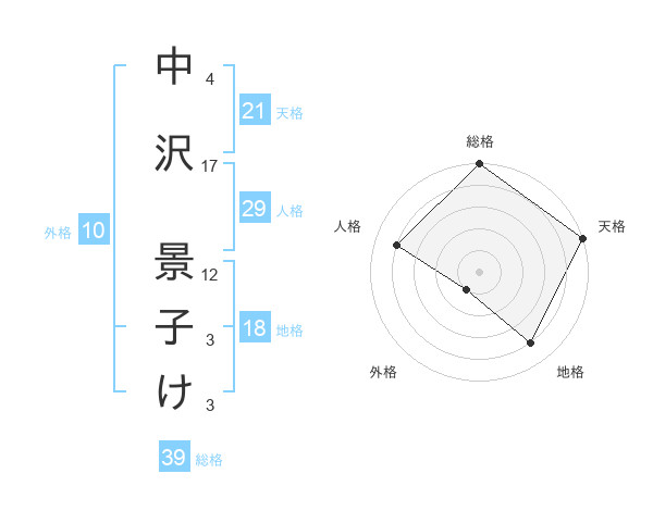 中沢 景子けさんの総格は39画の5点!