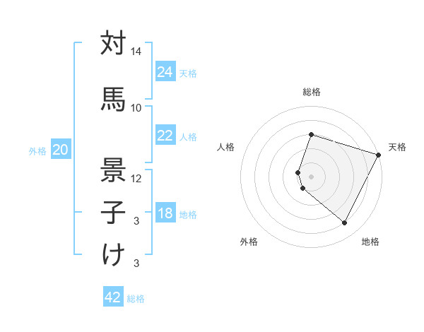 対馬 景子けさんを姓名の画数から五運を鑑定