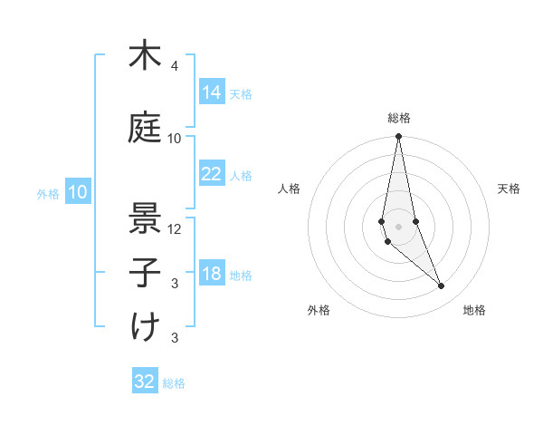 木庭 景子けさんを姓名の画数から五運を鑑定