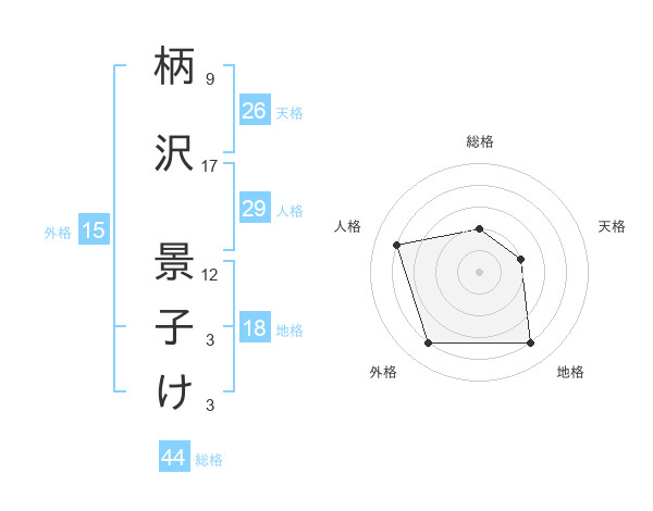 柄沢 景子けさんを姓名の画数から五運を鑑定