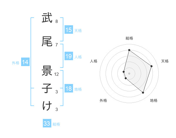 武尾 景子けさんを姓名の画数から五運を鑑定