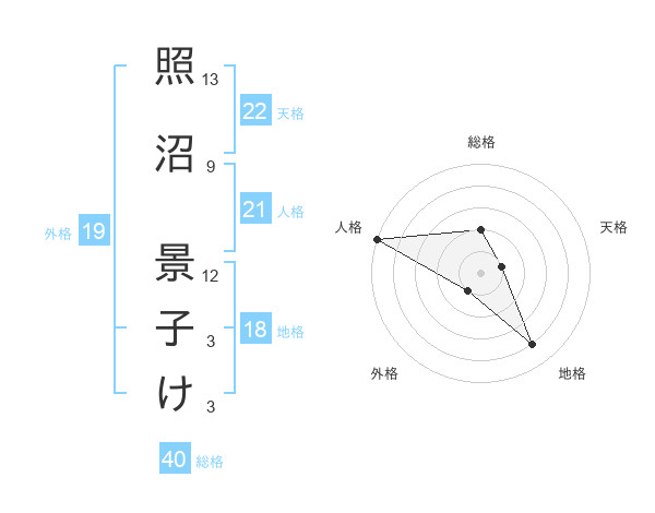 照沼 景子けさんの外格は19画の1点!