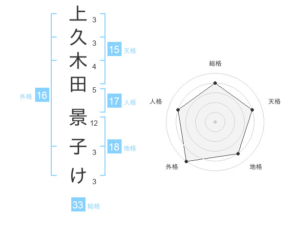 上久木田 景子けさんを姓名の画数から五運を鑑定