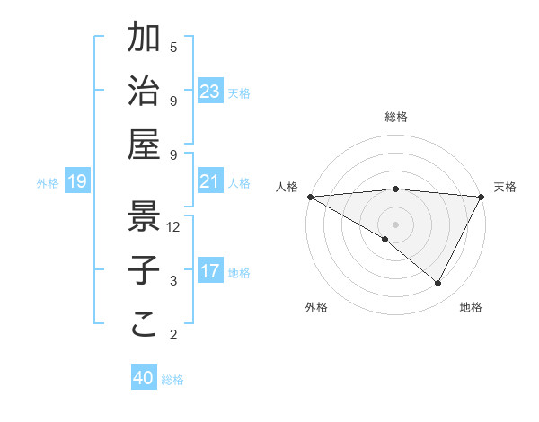 加治屋 景子こさんを姓名の画数から五運を鑑定