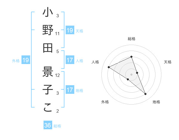 小野田 景子こさんの天格は19画の1点!