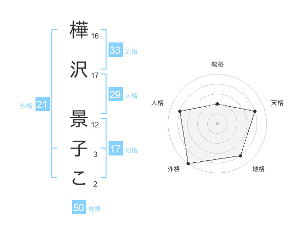 樺沢 景子こさんを姓名の画数から五運を鑑定