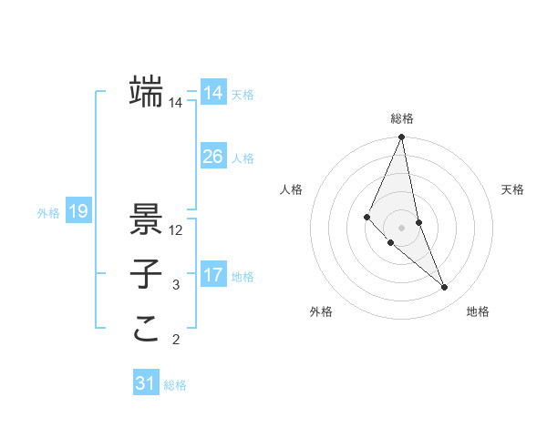 端 景子こさんの総格は31画の5点!