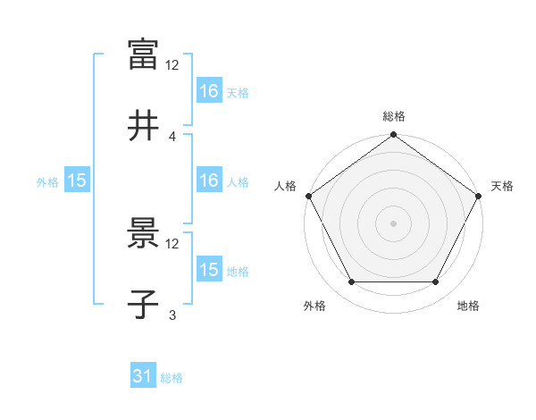 富井 景子さんの総格は31画の5点!