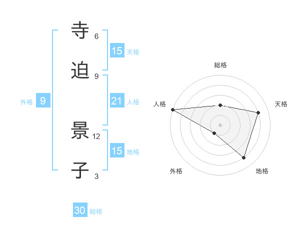 寺迫 景子さんの総格は30画の2点!