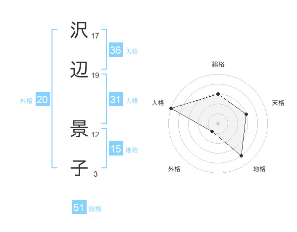 沢辺 景子さんの総格は51画の3点!