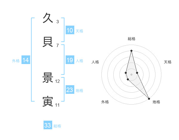 久貝 景寅さんの総格は33画の4点!