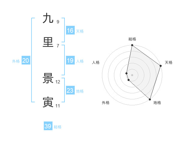 九里 景寅さんの外格は20画の1点!