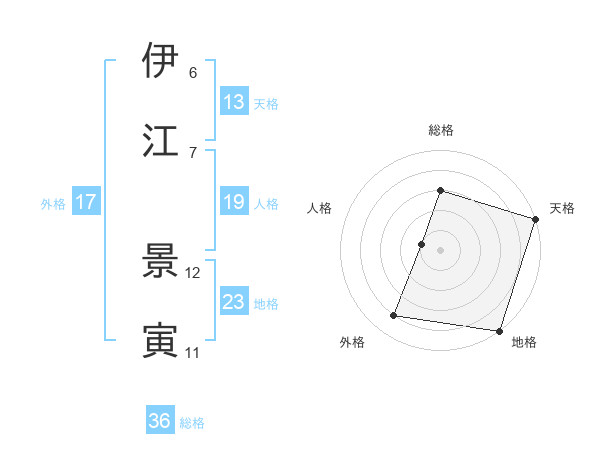 伊江 景寅さんの天格は13画の5点!