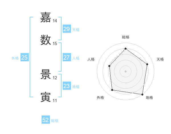 嘉数 景寅さんの総格は52画の4点!