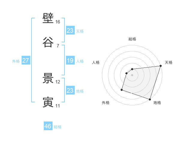 壁谷 景寅さんの天格は23画の5点!