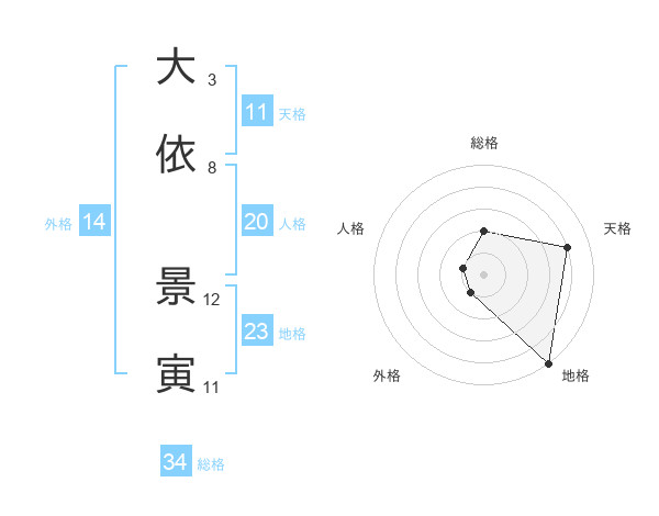 大依 景寅さんを姓名の画数から五運を鑑定