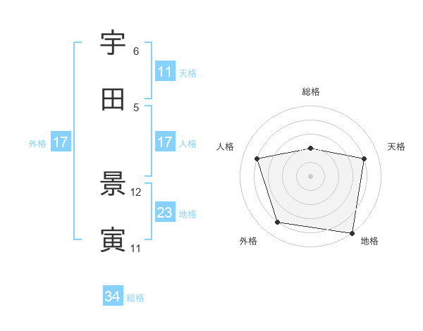 宇田 景寅さんの総格は34画の2点!