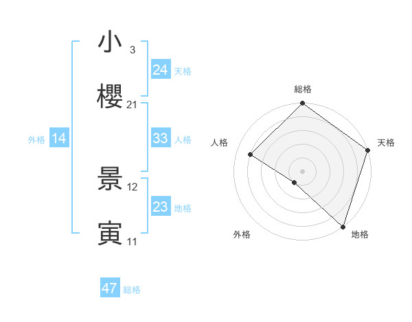 小櫻 景寅さんの総格は47画の5点!