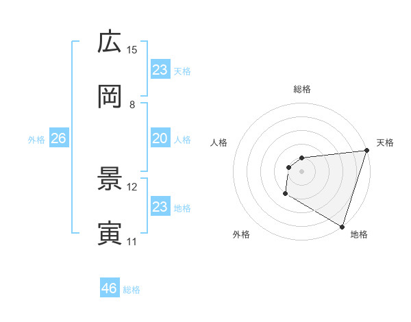 広岡 景寅さんを姓名の画数から五運を鑑定