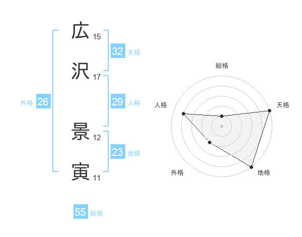 広沢 景寅さんの天格は32画の5点!