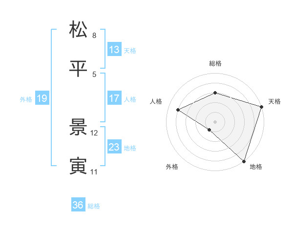 松平 景寅さんの天格は13画の5点!