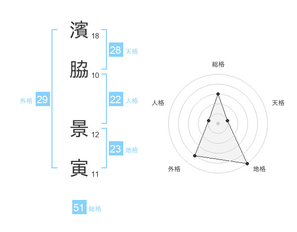 濱脇 景寅さんの総格は51画の3点!