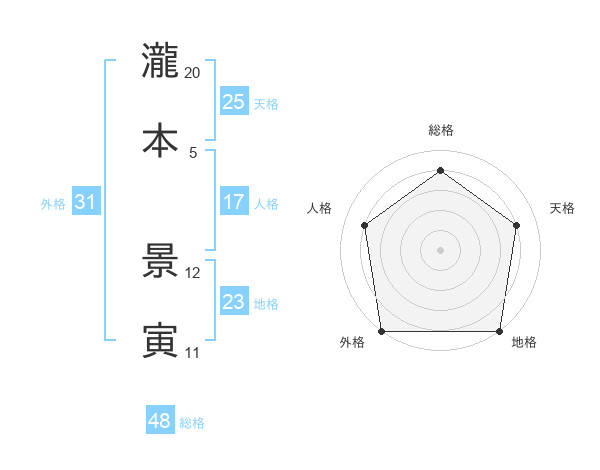 瀧本 景寅さんを姓名の画数から五運を鑑定