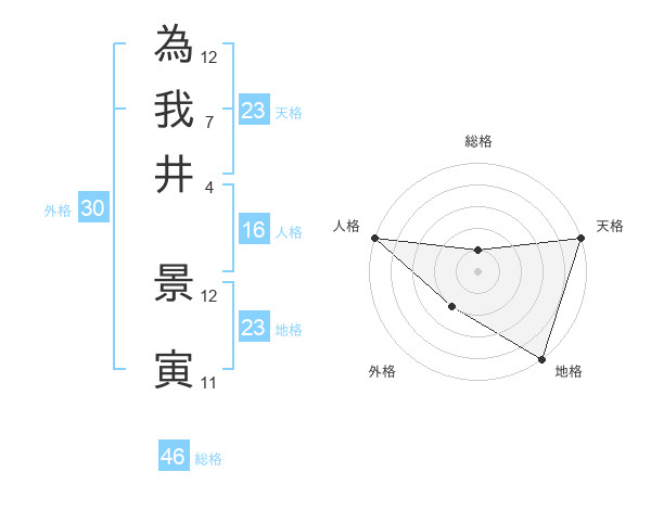 為我井 景寅さんを姓名の画数から五運を鑑定