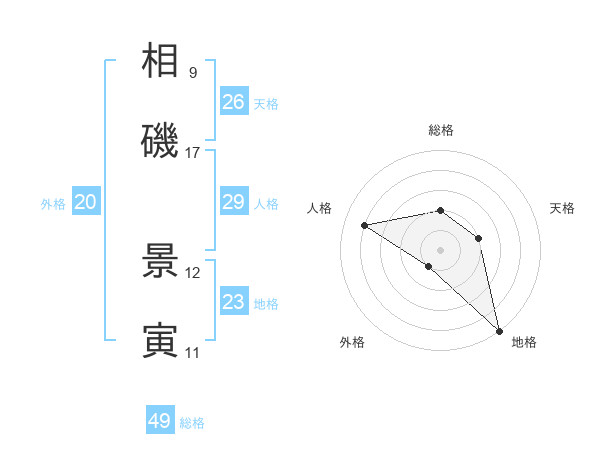 相磯 景寅さんの総格は49画の2点!