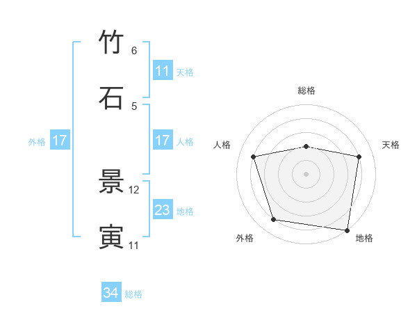 竹石 景寅さんの総格は34画の2点!
