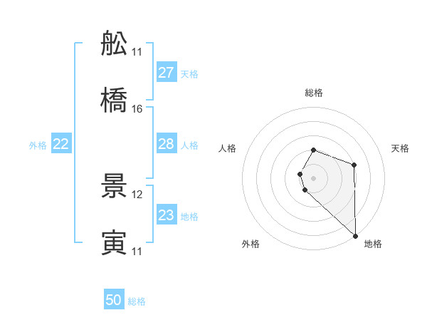 舩橋 景寅さんの総格は50画の2点!