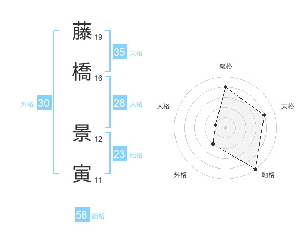 藤橋 景寅さんの総格は58画の4点!