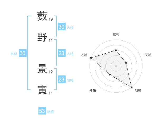 藪野 景寅さんの総格は53画の3点!