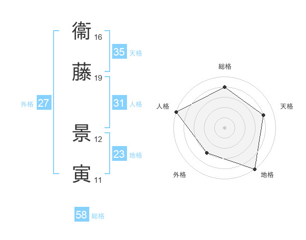 衞藤 景寅さんを姓名の画数から五運を鑑定
