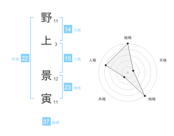 野上 景寅さんの総格は37画の5点!