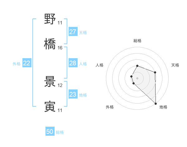 野橋 景寅さんの総格は50画の2点!