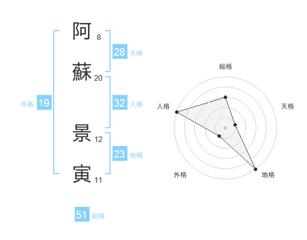 阿蘇 景寅さんの総格は51画の3点!
