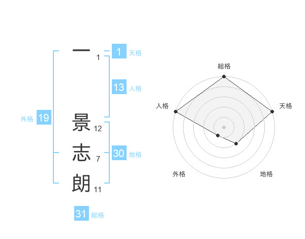 一 景志朗さんの総格は31画の5点!