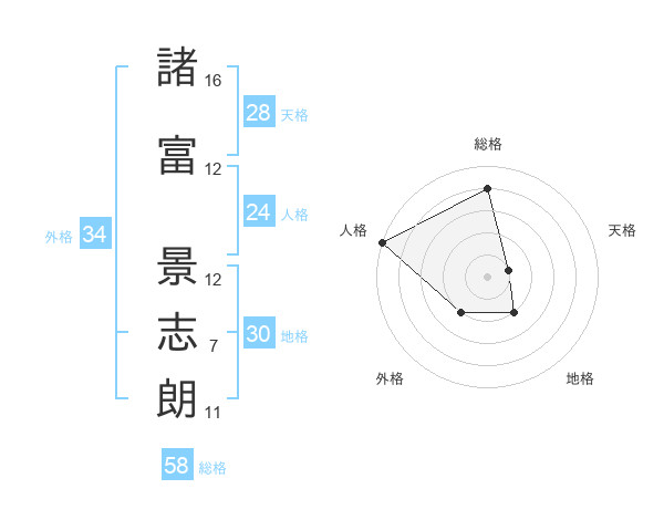 諸富 景志朗さんの総格は58画の4点!