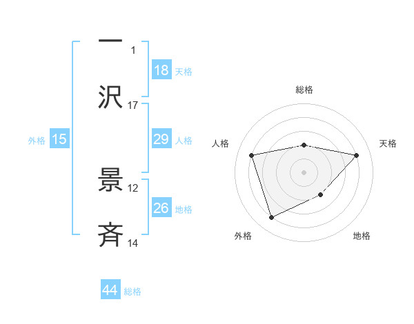 一沢 景斉さんを姓名の画数から五運を鑑定
